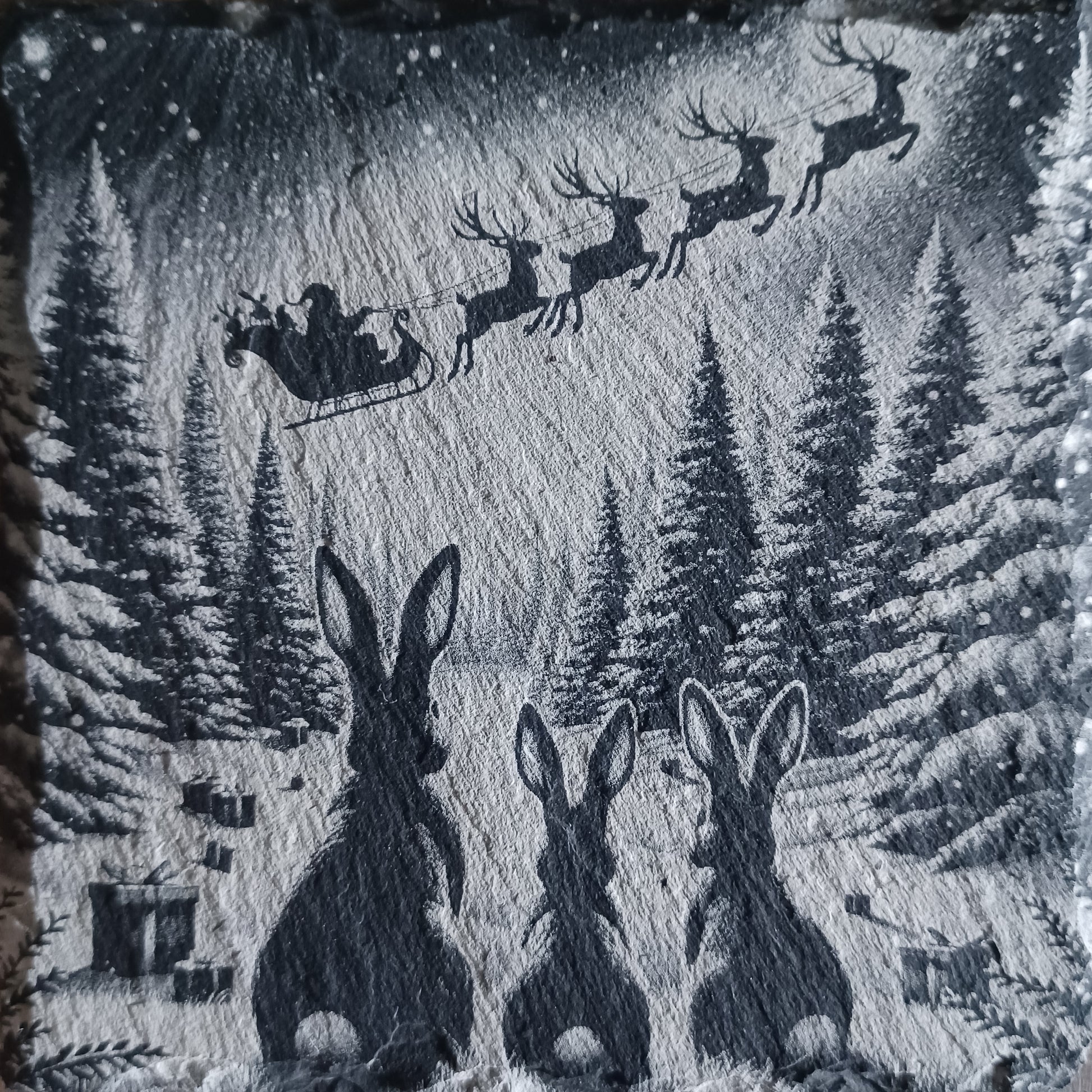 Sous-verre ardoise Les lapins fêtent Noël